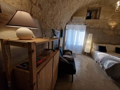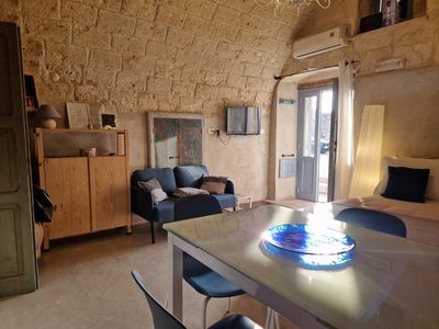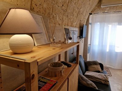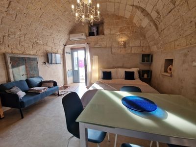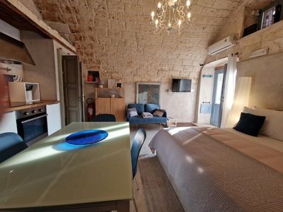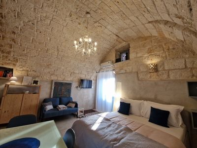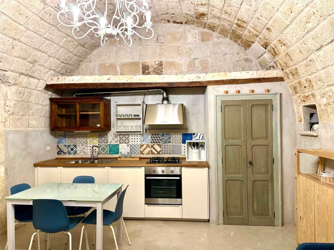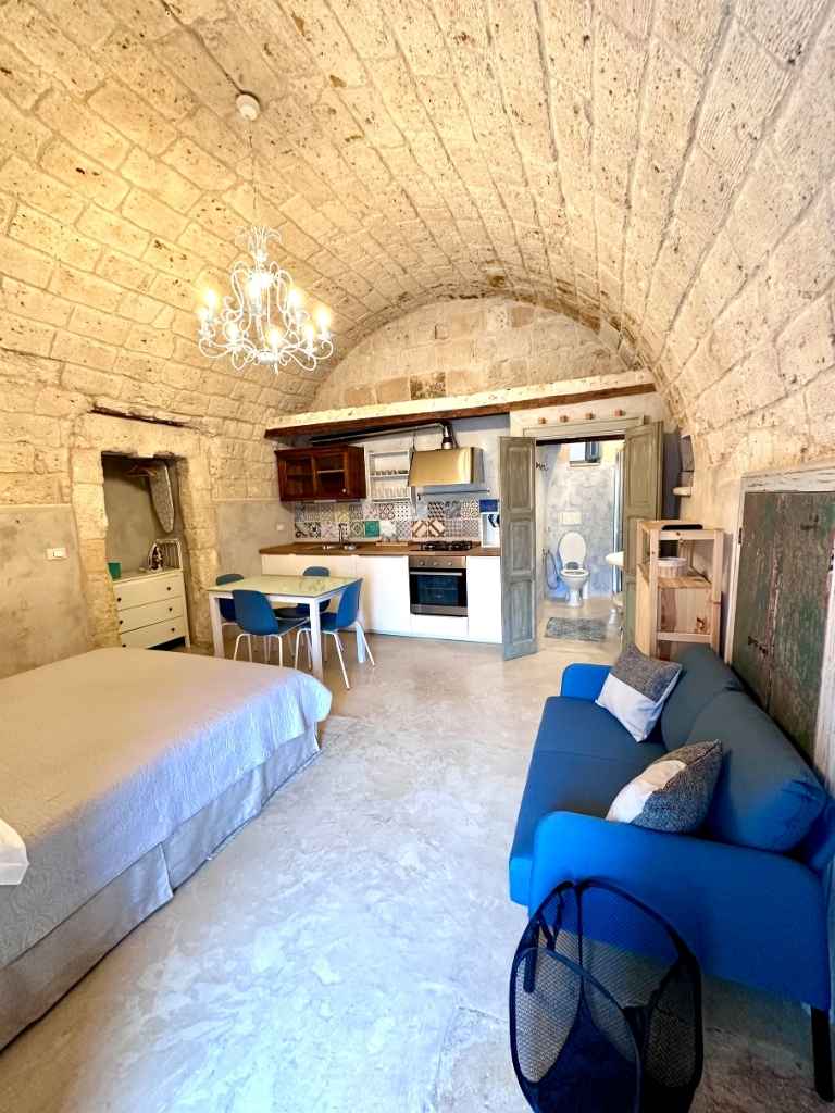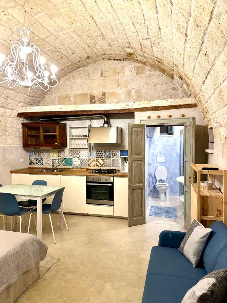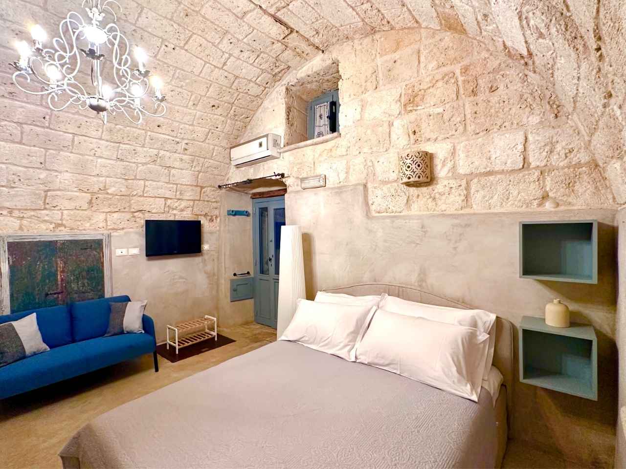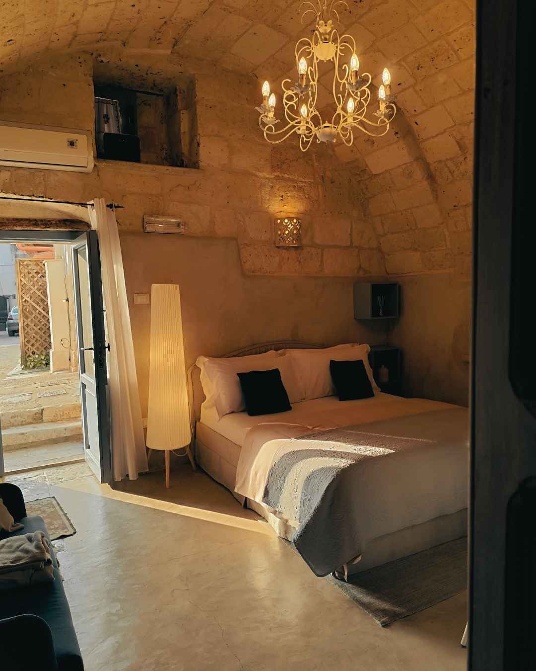 La suite è stata ristrutturata valorizzando la pietra viva e l’architettura originale, mantenendo un’atmosfera calda e accogliente. Gli spazi sono curati nei dettagli: dalla luce soffusa agli arredi moderni, tutto è pensato per offrire un soggiorno rilassante e piacevole, ideale per chi vuole vivere Bisceglie con tranquillità e stile.